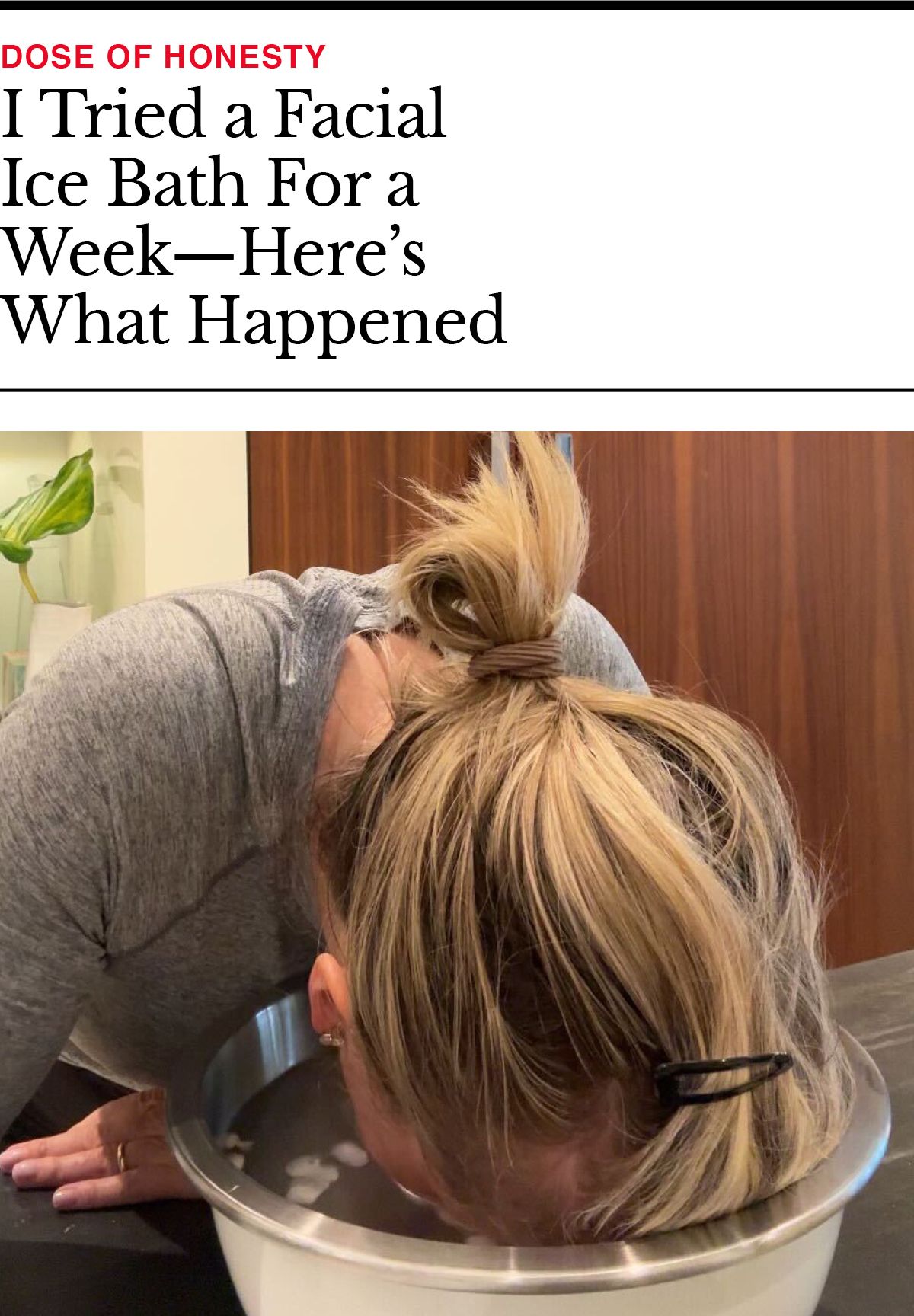 By now, you’ve probably seen the viral trend of people plunging their faces into a bowl of ice water. I decided to test this out on myself for a week to see whether this torture—I mean, treatment—actually delivers benefits or is just another self-care fad.