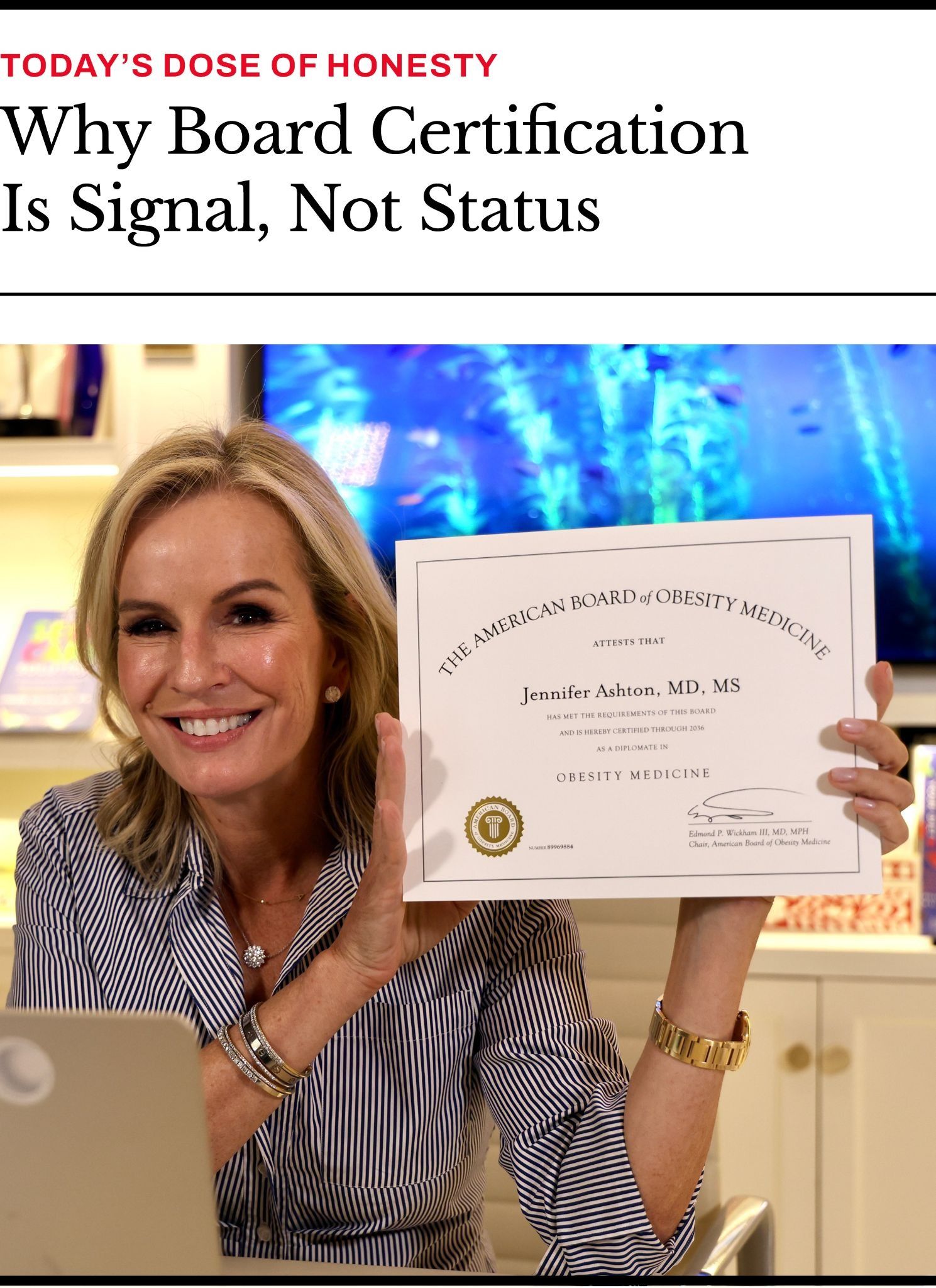So yes, I am proud I passed again! (I was first board-certified in obesity medicine in 2016!) Not because of the credential on paper, but because of what that renewal represents: a willingness to sit down, be examined, and be measured against a defined standard in a field that continues to evolve. It represents a commitment to staying sharp rather than coasting on past training, and an ongoing decision to keep earning your trust so that you do not have to wonder, with every new headline, whether the advice you are hearing is grounded or speculative.